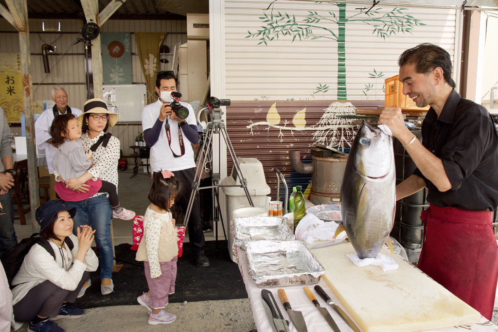 様々な場所への出張マグロ解体ショーの様子。
