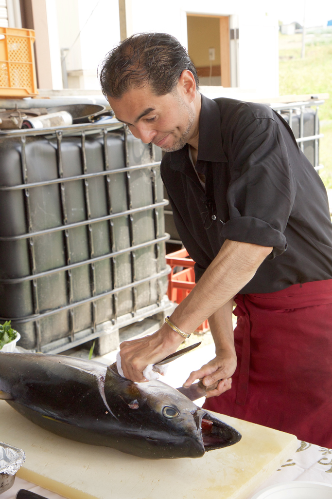 過去にローレンスで開催されたイベントでのマグロ解体ショーの様子。